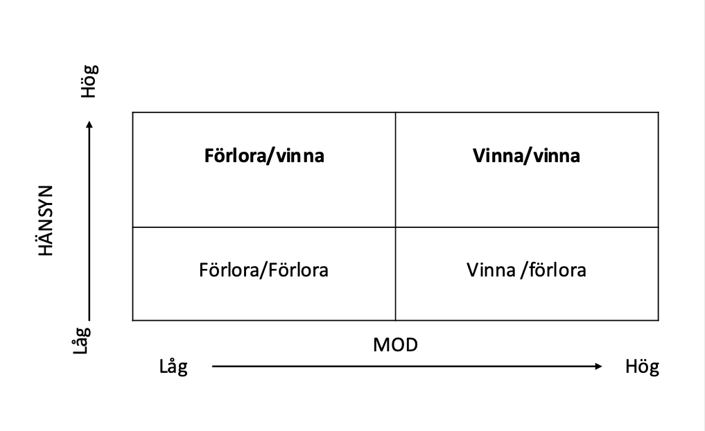 Win-win är en mental inställning – Som ledare behöver vi vara öppna för andras behov och synpunkter samtidigt som vi är uppriktiga med vad vi själva vill och behöver. Även om det inte är möjligt att nå vinna-vinna i varje situation så hjälper det att vi från början har en tydlig ambition att nå dit. Långsiktigt framgångsrika chefer styr inte sina medarbetare utan utvecklar tydliga förväntningar tillsammans med dem så att medarbetarna sedan leder sig själva. Det kräver både mod och hänsyn.